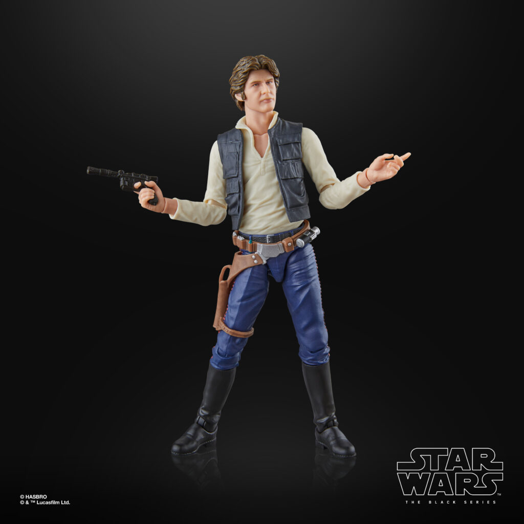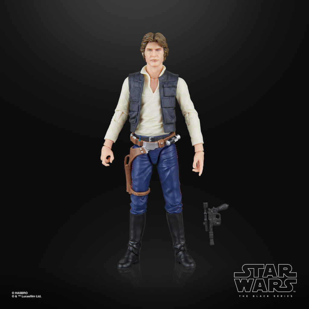 As captain of the Millennium Falcon, Han Solo and his co-pilot Chewbacca came to believe in the cause of galactic freedom.STAR WARS: THE BLACK SERIES includes 6-inch action figures, vehicles, and roleplay items from the 40-plus-year legacy of the STAR WARS Galaxy, letting fans create galactic scenes with a faithfulness to STAR WARS comic books, movies, series, and more. This Star Wars Hasbro action figure is detailed to look like Han Solo from Star Wars: A NEW HOPE. Comes with a blaster accessory, so he’s ready for galactic action. Look for more STAR WARS: THE BLACK SERIES 6-inch action figures to recreate your favorite scenes–or imagine your own