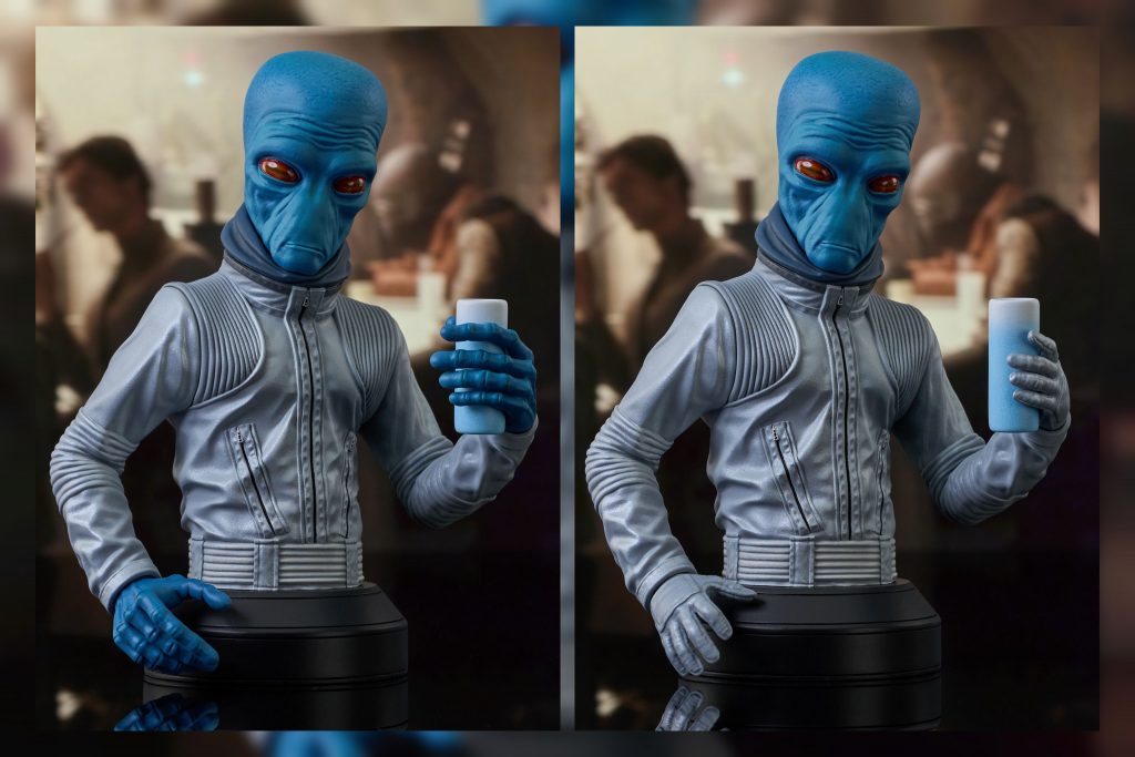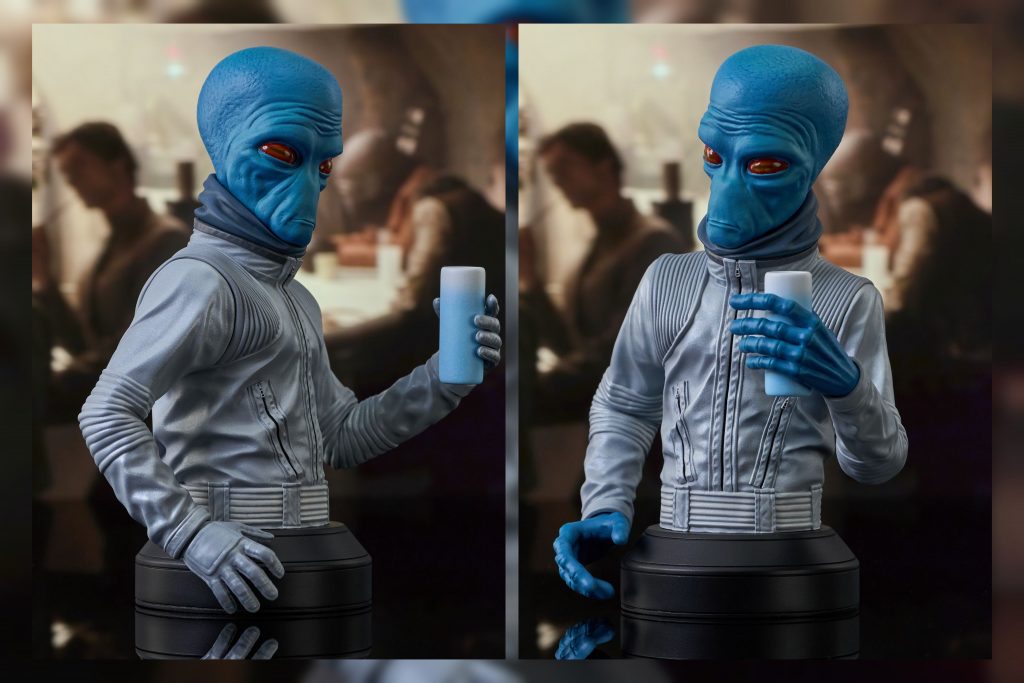 A Gentle Giant, Ltd. website-exclusive release! It’s Halloween again, and this year Gentle Giant, Ltd. is offering yet another creepy patron of the Mos Eisley Cantina! Joining Lak Sivrak and Labria, it’s Ellorrs Madak, the Duros alien who works as a freelance flight instructor and occasional smuggler. This approximately 6-inch mini-bust holds a drink in his gloved hand, but also comes with interchangeable ungloved blue hands, to reflect his two different appearances! Limited to only 500 pieces, he comes packaged with a numbered certificate of authenticity in a full-color box and is ONLY available at www.gentlegiantltd.com.