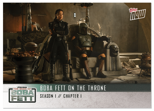 The only thing that might be hotter than Star Wars: The Book of Boba Fett series on Disney+ is the Merchandise that goes with it. From action figures to mugs there is something for any Boba Fett fan. Well thanks to TOPPS we have more amazing items to put in our collections. Yesterday TOPPS revealed their 2022 Star Wars TOPPS NOW – 5-Card Pack – Book of Boba Fett Chapter 1. This limited edition set will only be available to order until January 11, 2022.