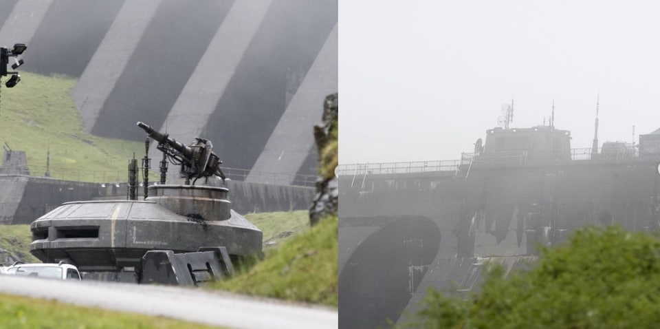 As you can see in the images above, the dam at Crucachan Reservoir in Scotland has gotten an Imperial makeover. (These new Andor set photos come courtesy of Redditor u/nonomam12.) Details on the new series are still unfortunately scarce. Thus, we don’t yet know what planet this will depict. From the looks of it though, this new Imperial base will be similar to those seen in The Mandalorian, on both Nevarro and Morak.