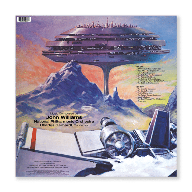 Originally released to supplement and not compete with the 2-LP Motion Picture Soundtrack, this 1-LP release skillfully combines a “Symphonic Suite” that John Williams created for concert performance with new arrangements of other cues from the film score. The Empire Strikes Back has become not only one of Williams’ most iconic scores, but one of the most iconic film scores of all time. The LP comes in a gatefold jacket with the original iconic Star Wars paintings by William Stout, images of John Williams, and notes from author Ray Bradbury, composer and critic Christopher Palmer, and from the maestro himself.