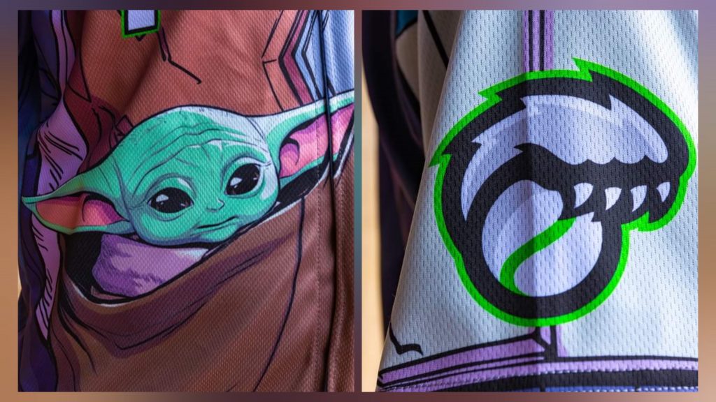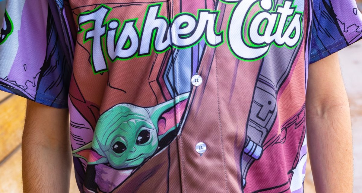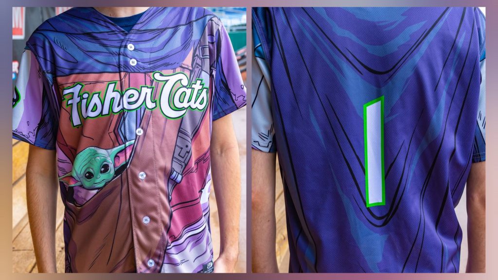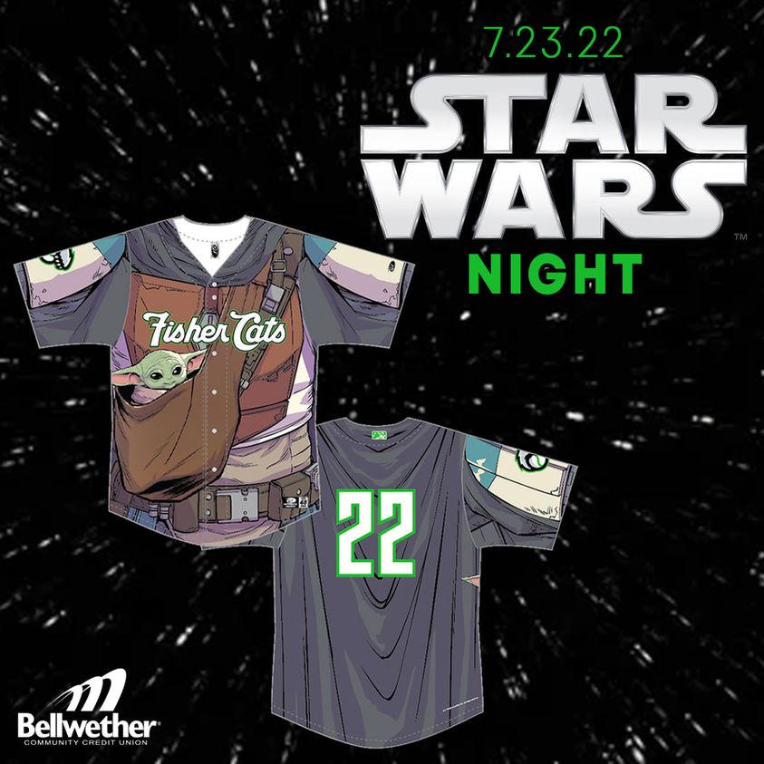 If you are like me there is nothing more exciting than when your two favorite things come together. In this case, I am talking about Baseball and Star Wars. If you follow Minor League Baseball you know that when they have their Star Wars night they usually celebrate in style. And when I mean in style I mean awesome Star Wars-themed jerseys. Most of the time these jerseys will be auctioned off with the money going to a local charity. Well, this year one jersey really stood out to me and that is The Mandalorian Grogu jersey that the New Hampshire Fisher Cats will be wearing on July 23, 2022. You can check out these Jerseys below.