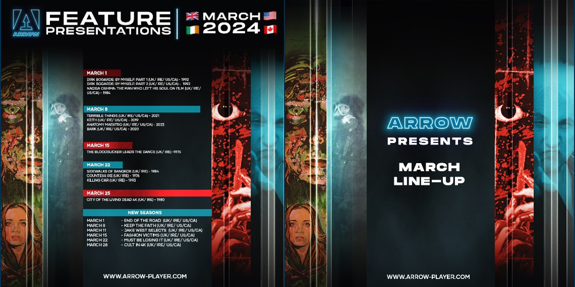 Arrow Video’s ARROW streaming service is the place to be for all kinds of genre affair and other movies and documentaries. The curated seasons for March 2024 include End of the Road, Keep the Faith, Jake West Selects, Fashion Victims, Must Be Losing It, and Cult in 4K. Here’s everything coming to ARROW this March.