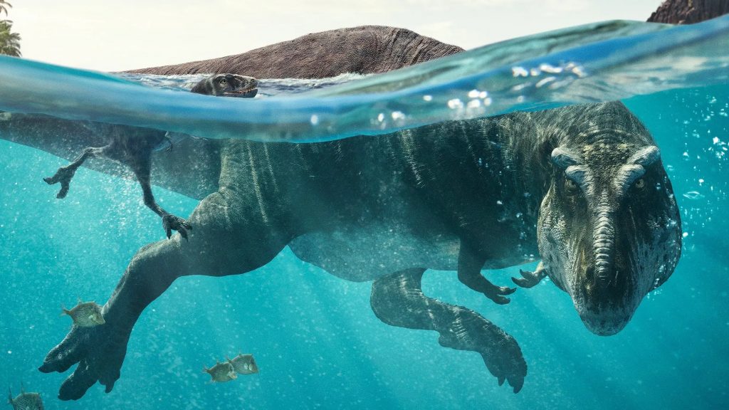 Speaking of which, I do like how they mixed the really good CGI in with real-life nature footage. The effect is like the old Walking with Dinosaurs documentary. The real-life nature footage really immerses you into this prehistoric planet. You actually feel like you’re watching footage of the planet from 66 million years ago taken by a time-traveling cameraperson.