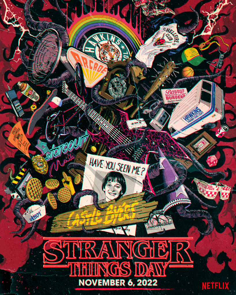 During Stranger Things Day, Netflix will roll out new exclusive content for the series on social media, host live fan experiences, and launch both virtual and in-person special screenings. Plus…expect a TON of new merch.