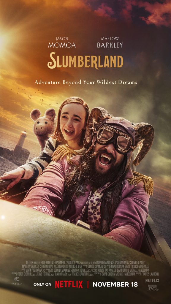 Slumberland takes audiences to a magical new place, a dreamworld where precocious Nemo (Marlow Barkley) and her eccentric companion Flip (Jason Momoa) embark on the adventure of a lifetime. After her father Peter (Kyle Chandler) is unexpectedly lost at sea, young Nemo’s idyllic Pacific Northwest existence is completely upended when she is sent to live in the city with her well-meaning but deeply awkward uncle Phillip (Chris O’Dowd). Her new school and new routine are challenging by day but at night, a secret map to the fantastical world of Slumberland connects Nemo to Flip, a rough-around-the-edges but lovable outlaw who quickly becomes her partner and guide. She and Flip soon find themselves on an incredible journey traversing dreams and fleeing nightmares, where Nemo begins to hope that she will be reunited with her father once again.