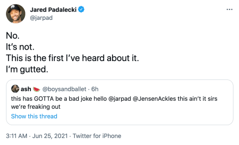Ackles speaks quite candidly about the entire ordeal on Michael Rosenbaum’s (Smallville) podcast, Inside of You. Explaining exactly what happened, how it happened, and why it happened.