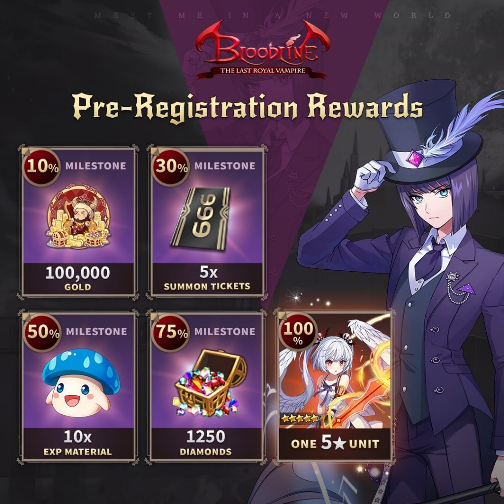 As one last bonus to sweeten the deal though, Bloodline: The Last Royal Vampire are giving away a few pre-registration bonuses to those who pre-registered for the game. It’s likely too late by now for new players to get these bonuses, but at least those who pre-registered can still get them. These bonuses consist of, in order of milestone progress: