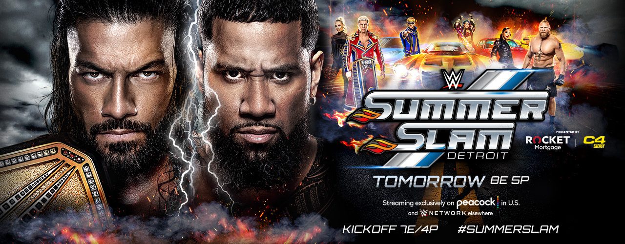WWE will be holding one of their big four annual events when WWE SummerSlam hits Detroit, Michigan this Saturday, August 5th at 8pm EST/5pm PST with the kickoff starting at 7pm EST/4pm PST live on Peacock in the US and WWE Network elsewhere. The biggest party of the summer is headlined by three massive matchups which will be culminating their respective feuds. Cody Rhodes vs Brock Lesnar will meet in the third match of their trilogy that started after WrestleMania. While we return to where their feud initially started when Finn Balor goes one on one with Seth Rollins for World Heavyweight Championship. Lastly, we have reached the pinnacle of the Bloodline when Jey Uso faces off against Roman Reigns in Tribal Combat for the WWE Undisputed Universal Championship.