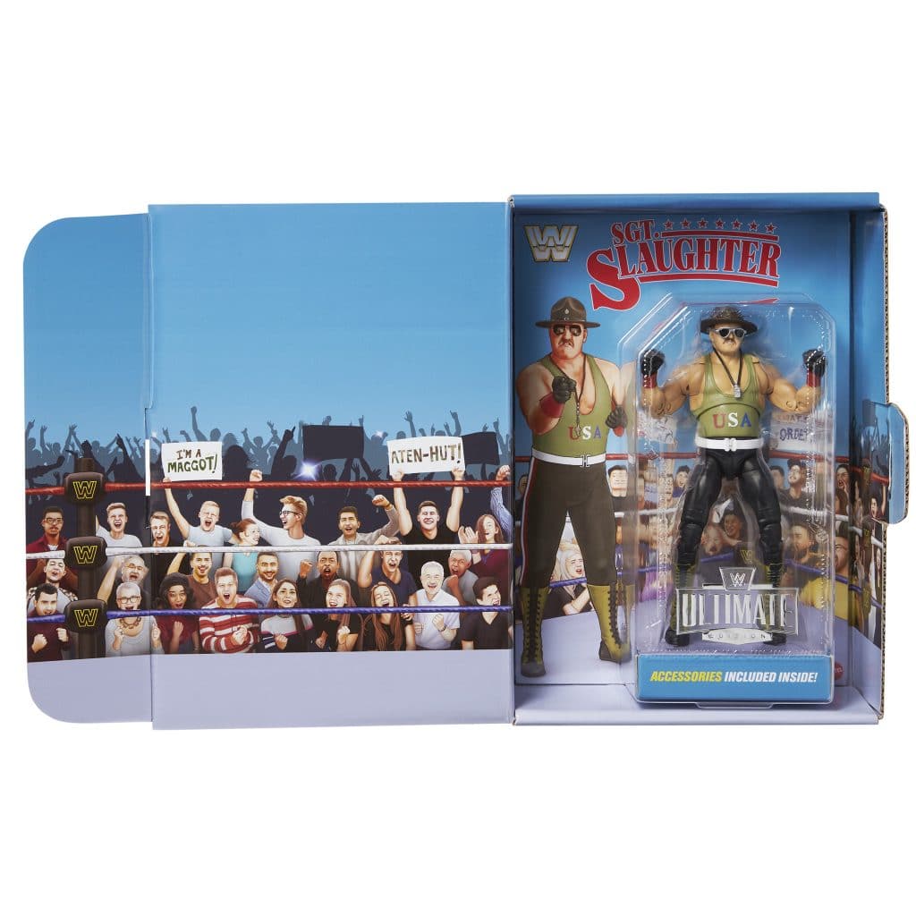 - The WWE Sgt. Slaughter figure comes in nostalgic packaging that instantly transports fans back to the 80’s golden era of WWE.
